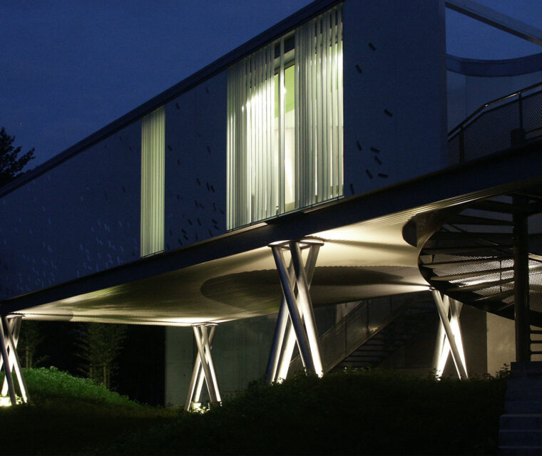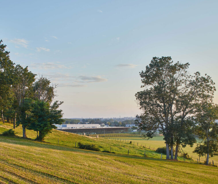 CARACTÉRISTIQUES L’image de la nouvelle caserne image est définie: – Par une approche «signalétique» ponctuelle distinguant les entités « fonctionnelles » (casernement/restauration/gymnase/tour d’entraînement) de l’entité « résidentielle » de la tour des logements. Le principe est d’unifier l’ensemble du bâti en nuances de blanc et valeurs de gris, rehaussé de ponctuations rouges pour la façade du casernement, et d’un revêtement métallique pour les volumes de loggias des logements. D’autre part, il est posé un traitement graphique (peinture au sol) sur la vaste esplanade Est, l’aire de giration des véhicules, la zone d’hélisurface (30m de diamètre) et les parkings dédiés. – Par une approche de « valorisation foncière», car le site au Nord est mutable en quartier résidentiel et la voie des Meuniers rendue publique. L’axe Nord-Sud structurant de la ZAC longera la façade Ouest de l’îlot occupé par la tour des logements et le gymnase. La tour de logement sera à la même hauteur que les nouvelles constructions de la ZAC. L’aspect architectural des façades de la tour de logements est à un niveau de prestations comparable que les logements de la ZAC. Le gymnase sera vu du haut des futurs logements avoisinants. – Par une approche de « simplification» des questions techniques et réglementaires. Le traitement des enveloppes est cadré par le programme, la marge de manœuvre de conception se situe dans la limitation de détails simples à réaliser, et pérennes. -Par une approche « avec le sol », indispensable ayant permis de remettre à niveau la définition des espaces extérieurs: renforcement de l’aménagement végétal à l’Ouest, de la qualité de l’esplanade à l’Est, et des clôtures.